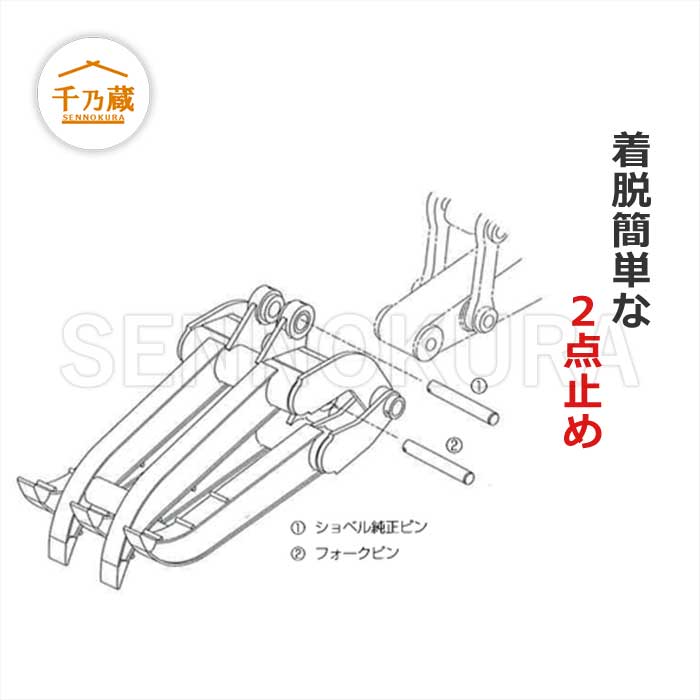 上下爪部材でシリンダーの推力を吸収分散させる構造になっているので、アームへの負担は最少で、いま最も進化したフォークです。
