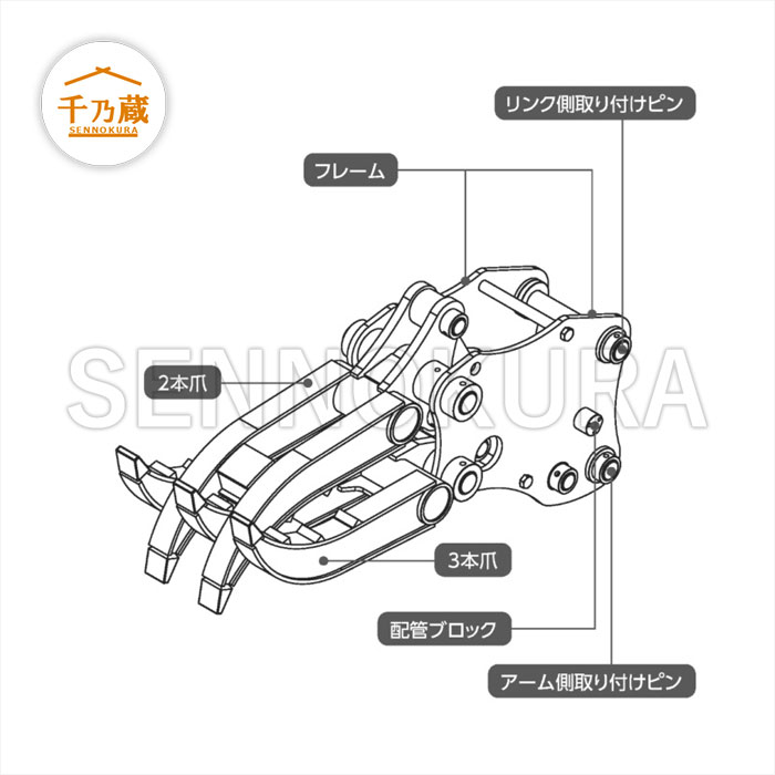内臓油圧シリンダーで爪の開閉作業を行え、