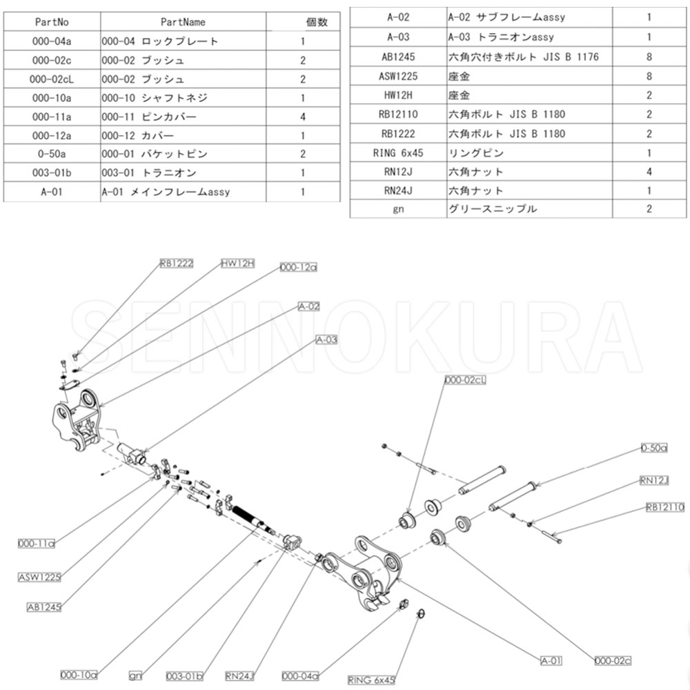 ショベル取付1台分(ピンx2本・ブッシュx4個)