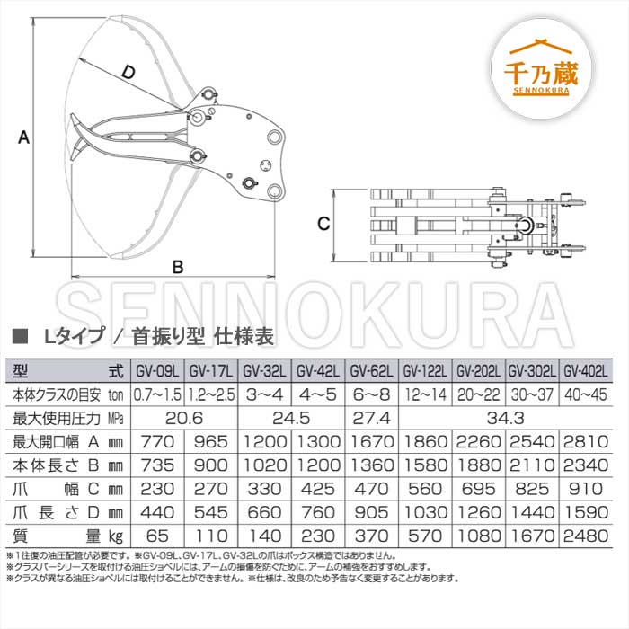 【型式】GV-62L【取付ショベル重量】6t〜8t