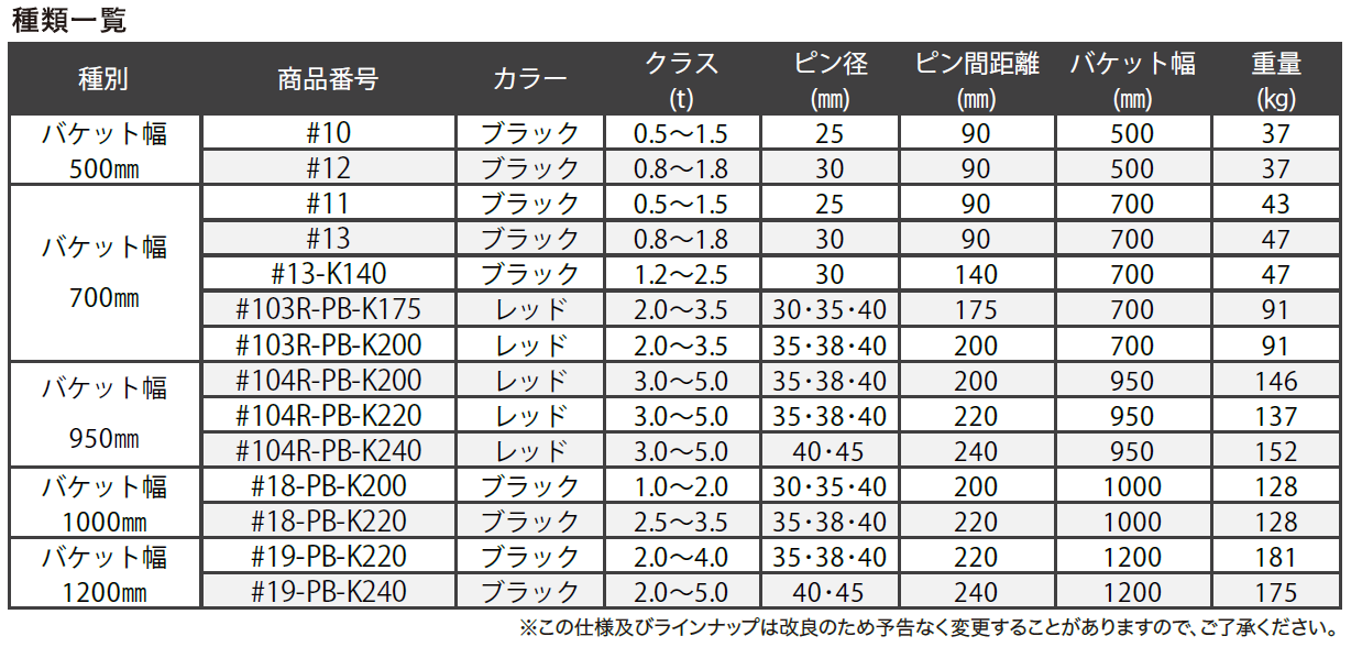 ※ピン間距離は、バケットの振り角に関係しますが実寸法と購入商品との多少の誤差は利用上問題ありません。