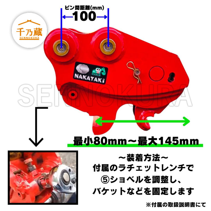ピン間距離:100mm(取付許容範囲80〜150mm)