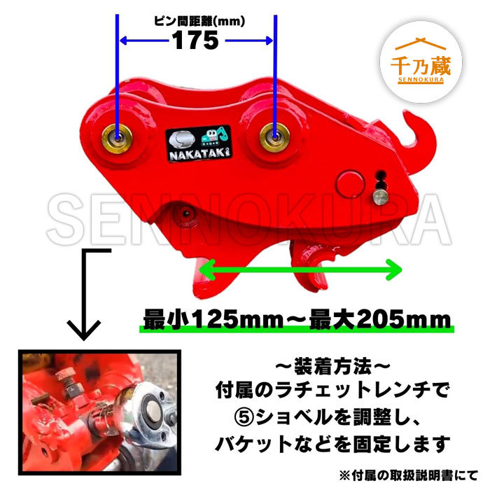クイックヒッチ #63-105F NAKATAKI 1.0〜2.0tクラス 標準仕様