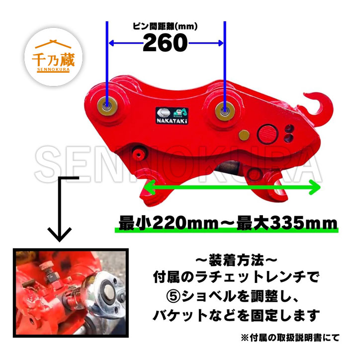 ピン間距離:260mm(取付許容範囲220〜340mm)