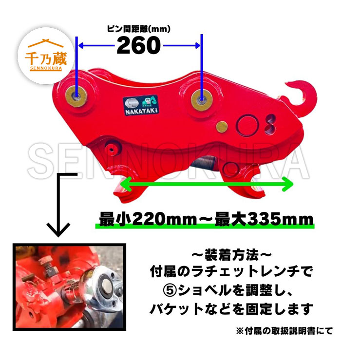 ピン間距離:260mm(取付許容範囲220〜335mm)