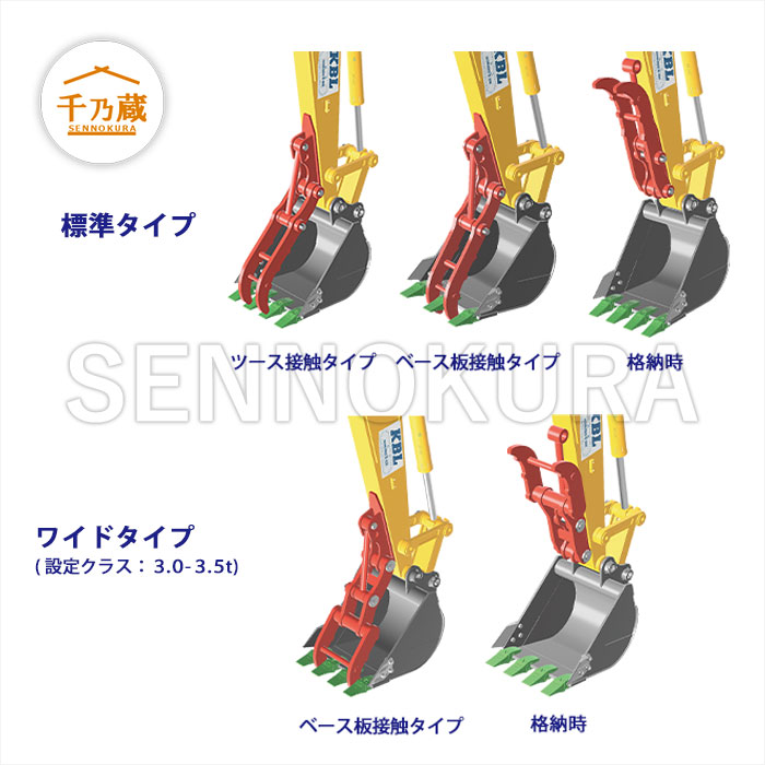 必ず油圧ショベルアーム幅をお確かめの上取付してください。機械本体への溶接の際は機械メーカー基準により適切に行って下さい。