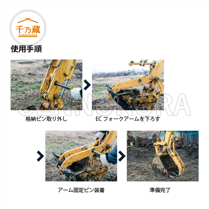 バケット作業とフォーク作業が同時にできる。掘削時はアームに固定し通常通り作業可能♪