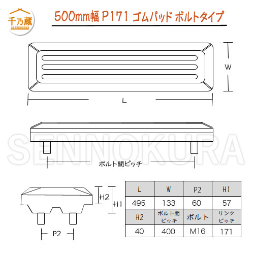 日立 ゴムパッド ZX130K-3 500mm幅 4本ボルトタイプ 88枚セット