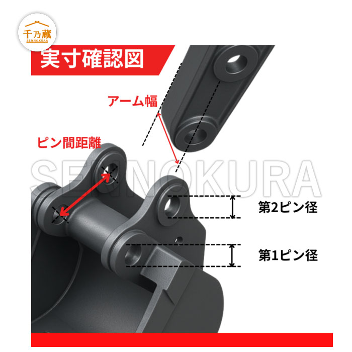 ピン間距離は、バケットの振り角に関係しますが実寸法と購入商品との多少の誤差は利用上問題ありません。誤差が気になる方は購入をご遠慮ください。