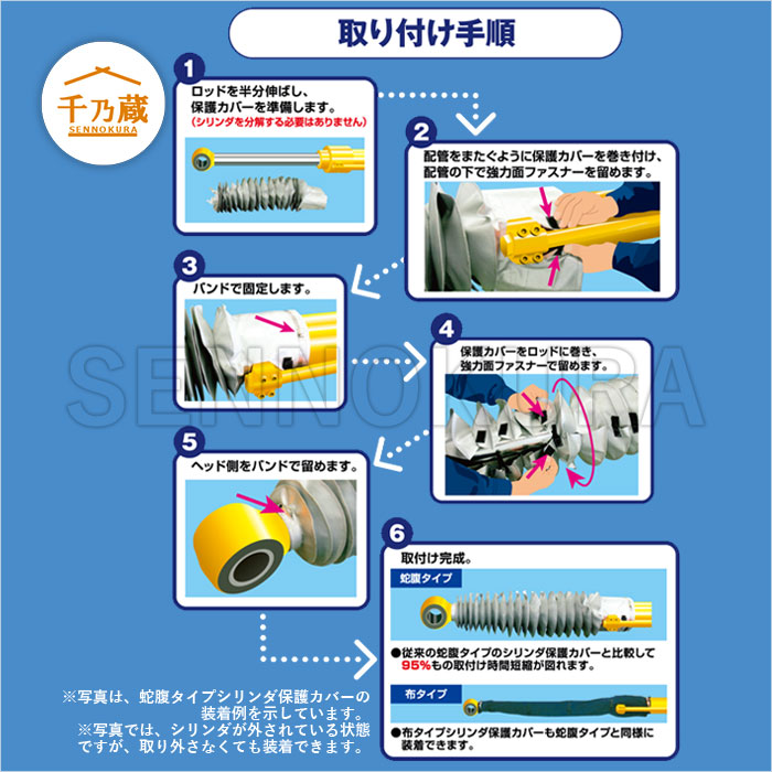 ・筒状ではなくシリンダーロッドを包む構造なのでシリンダーロッドを外す必要なし!