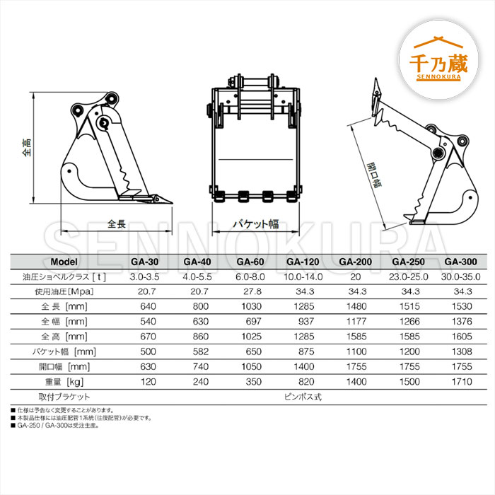 GAバケット ギザギザバケット GA-200 20t