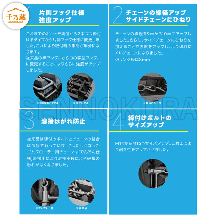 ゴムクローラー用滑り止めチェーン キャリアダンプ 500幅 片側フック仕様