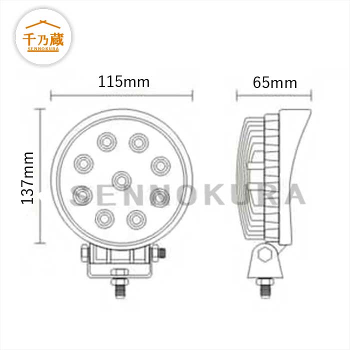 LEDライト(作業灯) 丸型 U字ステー付 L1027-27W 3個セット