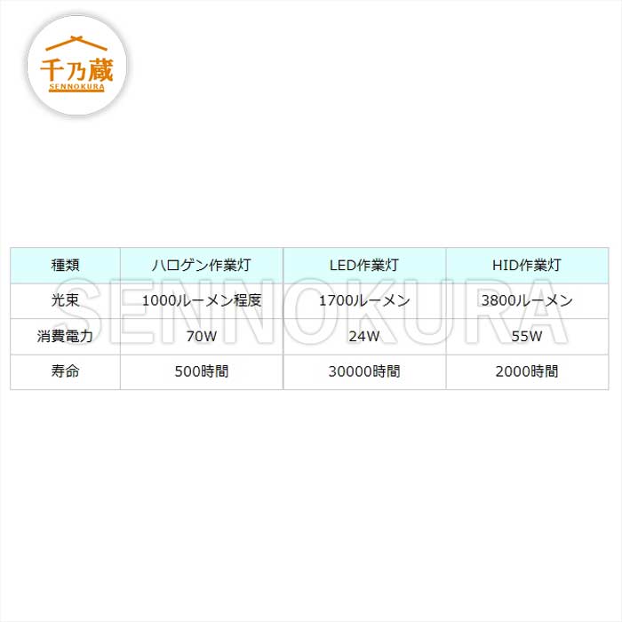 一般的な作業ライトからAssy交換と"+&-"線を接続するだけでHIDの明るさが簡単に手に入ります。