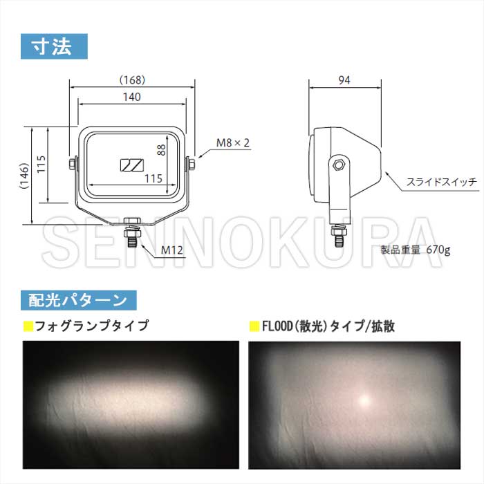 さまざまな建機に対応可能なハロゲンライト 破損等したライトの交換に最適です。 【商品詳細】 灯体寸法(mm):115×140 レンズサイズ(mm):88×115 仕様:12V55W/U字ステー・本体スイッチ付 レンズタイプ:フォグランプタイプ ボルト:M8 呼称:1064-12-3 ミニバックホーに適用