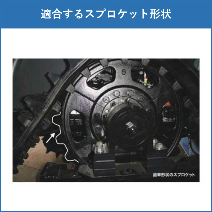 ※ゴムクローラーのラグパターン(表面の山の形)は使用機械やサイズにより異なる場合がございますが、性能等の違いはございません。