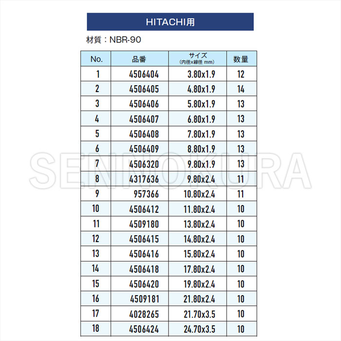 Oリングは建設機械用油圧シール製品のアフターマーケットで定評のあるメーカーの製品です。